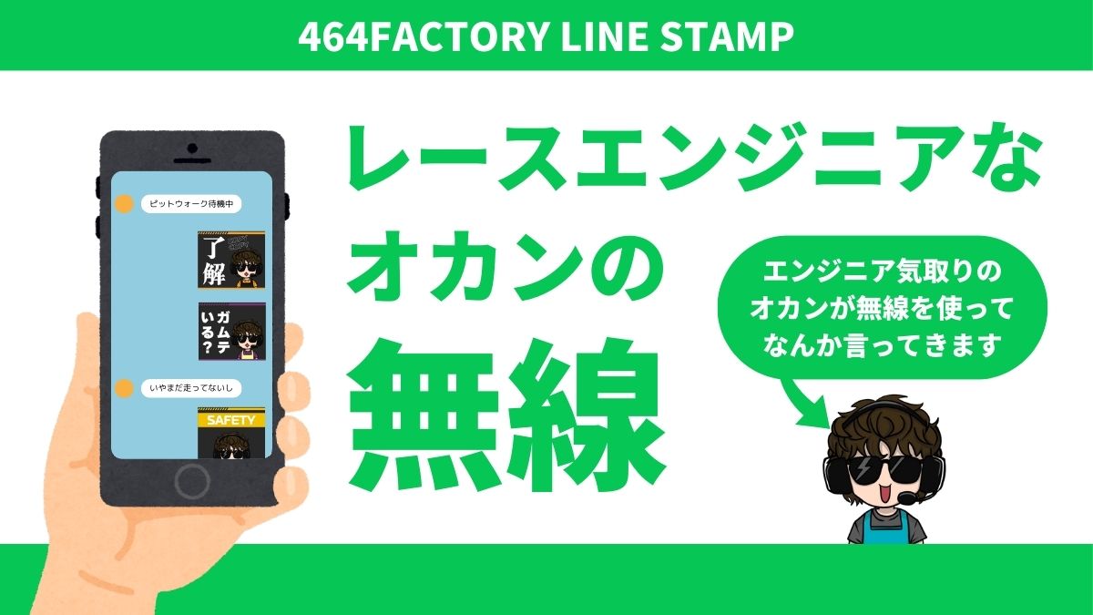 Information 2024.10.01 『TRACKLIMIT( 限界挑戦 ) 』リリースのお知らせ 2024.08.23 LINEスタンプ「レースエンジニアなオカンの無線」公開しました 2024.03.26 LOOKBOOK 464FACTORYでは、グラフィックデザインやWEBサイトなど、お客様の活動を支えるコンテンツ制作をおこないます。 サービス内容について レースエンジニアなオカンの無線 LINE STAMP発売中! LINE スタンプを見る author