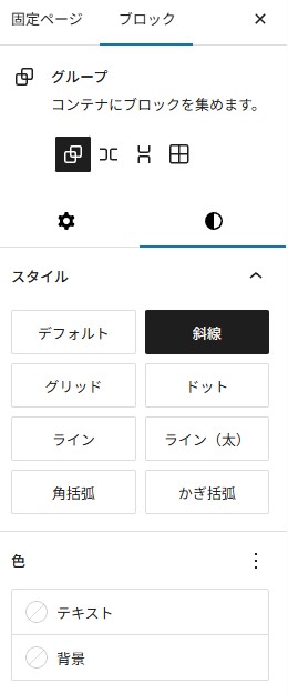 グループの色選択で「背景」をクリックすると、単色、またはグラデーションで設定できます。